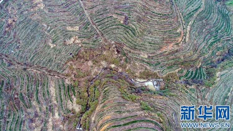 無人機(jī)航拍下的千畝茶葉基地。新華網(wǎng)發(fā) 鄧龍華攝