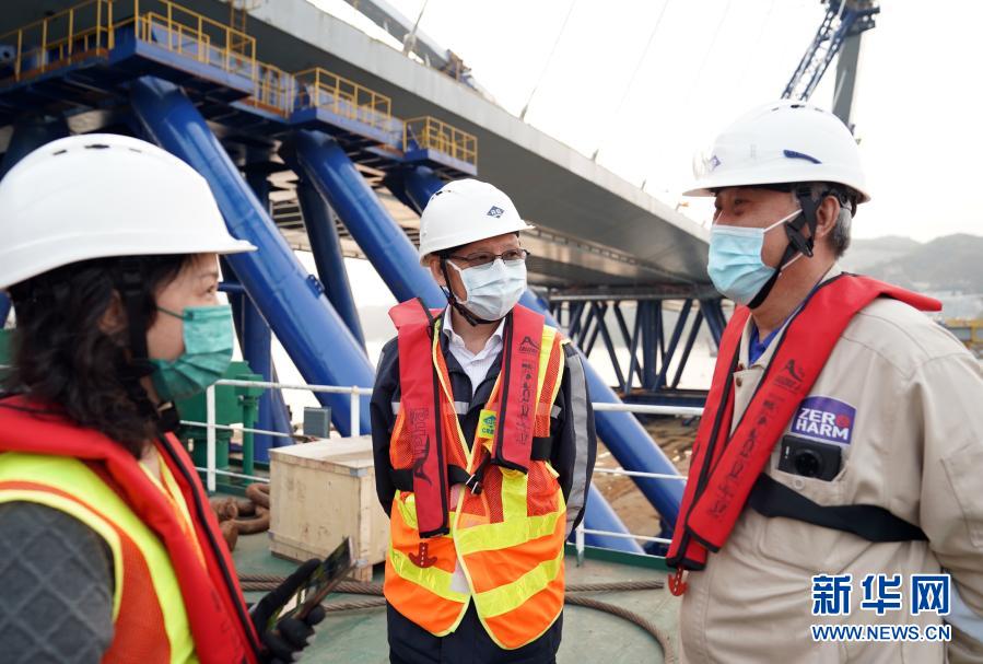 特區(qū)行政長官林鄭月娥于2月25日和特區(qū)政府運(yùn)輸及房屋局局長陳帆等一同乘船視察了該工程,并與之合影。在當(dāng)天的個(gè)人社交媒體上,她對(duì)這一“超巨型的預(yù)制組件”鋼橋表示贊賞,對(duì)工程的諸多創(chuàng)新表達(dá)期待。