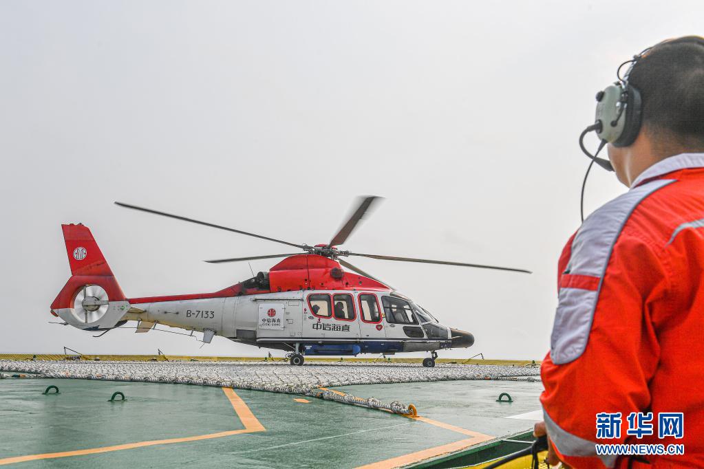 這是4月25日拍攝的中國海油樂東15-1氣田直升機甲板。