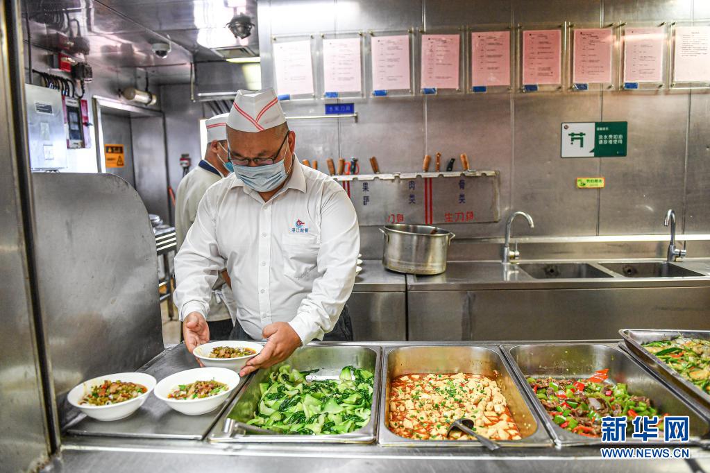4月25日,廚師在中國海油樂東15-1氣田餐廳內(nèi)準(zhǔn)備午餐。