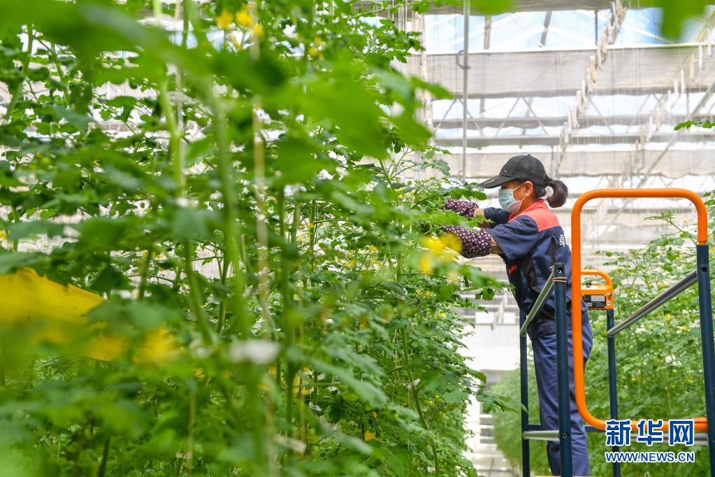 在吉林省吉林市永吉縣卓遠農(nóng)業(yè)種植專業(yè)合作社的“植物工廠”,農(nóng)民趙玉霞在修整作物(4月14日攝)。新華社記者 張楠 攝