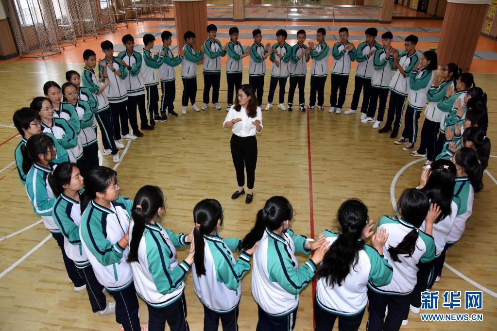 5月23日,青島通濟實驗學(xué)校高三學(xué)生在進行“激情節(jié)拍”游戲。