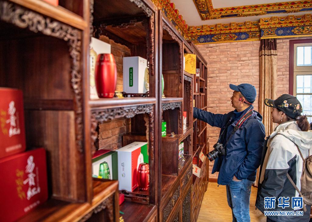 拉薩市北京路,崗堅茶葉股份有限公司門店內(nèi),一些造型獨特、包裝各異的茶葉產(chǎn)品吸引著顧客。