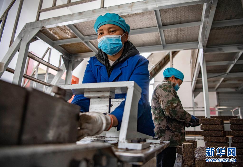 西藏易貢茶場的工人在制作磚茶(4月1日攝)。新華社記者 孫非 攝