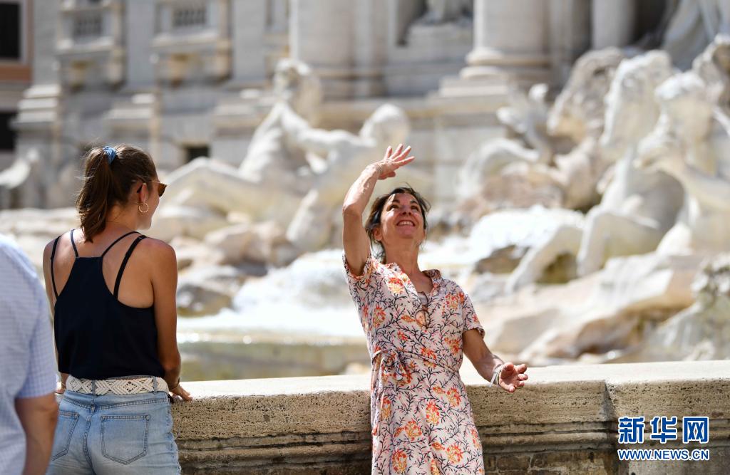 7月11日,一名女子在意大利羅馬向許愿池里投硬幣許愿。