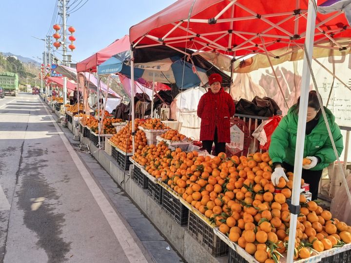 山间路旁的驿站边,常有农户摆摊卖橙,黄澄澄的脐橙堆成小山,果香四溢。即便只是路人下车问路,淳朴的果农也会热情招呼,递上鲜甜的脐橙邀人品尝。
