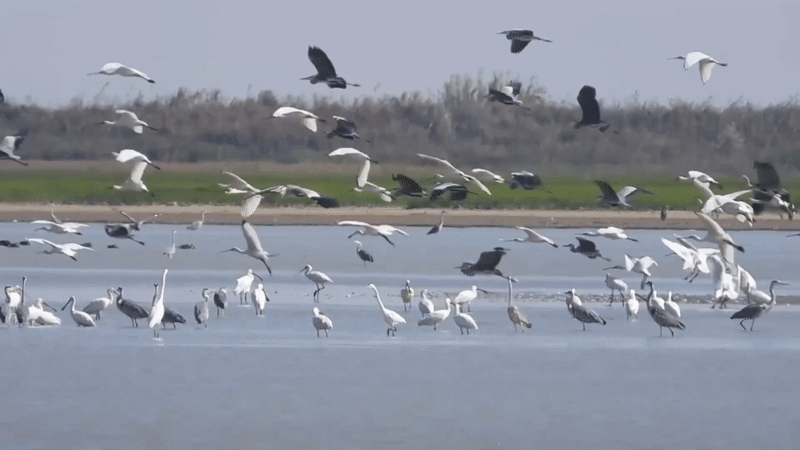 作为世界主要越冬候鸟栖息地,每年秋冬季,有数十万只候鸟从西伯利亚、蒙古国、中国东北等地飞抵鄱阳湖越冬,包括珍稀的白鹤、东方白鹳、灰鹤等。
