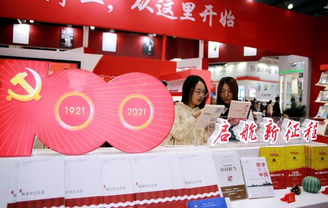 在會(huì)場最醒目位置特設(shè)慶祝建黨100周年主題圖書展區(qū)