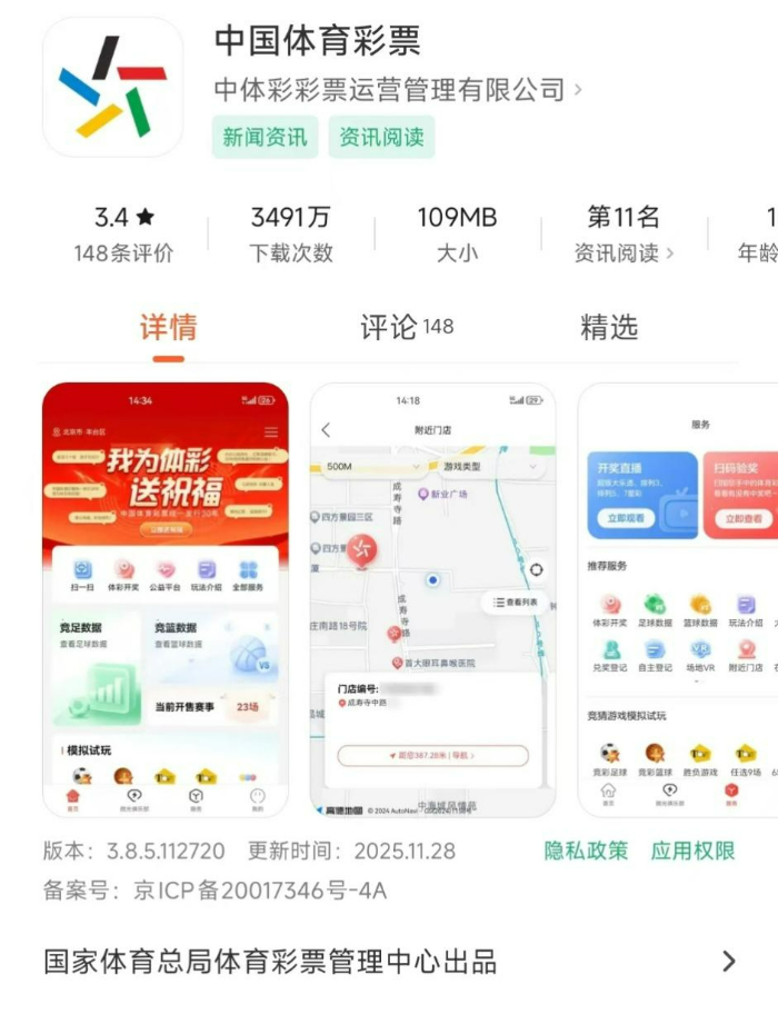 请认准体彩官方App“中国体育彩票”,仅在官方应用商店上架,且功能仅限于中奖信息查询、门店导航等,绝无购彩、充值功能。