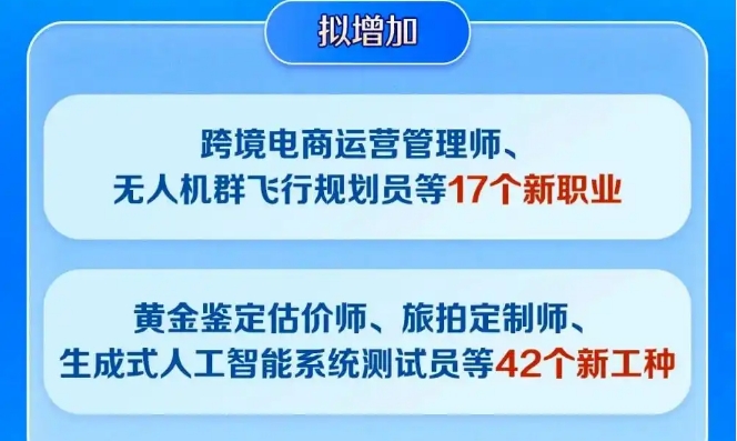 近日,人社部宣布擬新增跨境電商運營管理師、無人機(jī)群飛行規(guī)劃員等17個新職業(yè),以及生成式人工智能系統(tǒng)測試員、睡眠健康管理師等42個新工種。這些新職業(yè)、新工種既是產(chǎn)業(yè)變革的縮影,也是對社會高質(zhì)量發(fā)展需求的生動回應(yīng)。新職業(yè)持續(xù)涌現(xiàn),開啟了時代創(chuàng)造的無限可能。面對職業(yè)選擇,不少年輕人主動擁抱變化,抓住新賽道。