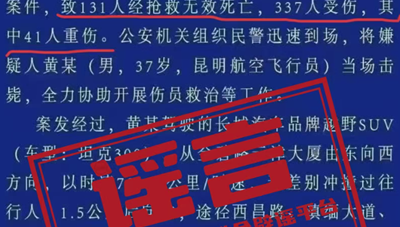 近日,有網(wǎng)民散布虛假的“警情通報”,造謠傳播云南昆明交通事故“致131人死亡,337人受傷”等不實信息,公安機(jī)關(guān)核查后,依法對造謠者進(jìn)行了刑事拘留?!八{(lán)底白字”的“警情通報”是公安機(jī)關(guān)權(quán)威發(fā)布的重要渠道。不法分子竟敢冒用官方標(biāo)識,將“2死9傷”惡意篡改成“131人死亡、337人受傷”,并編造聳人聽聞的細(xì)節(jié),真是膽大包天!