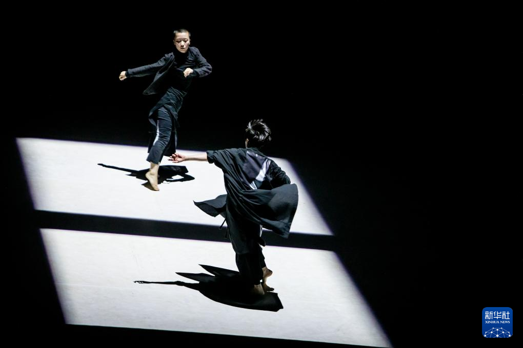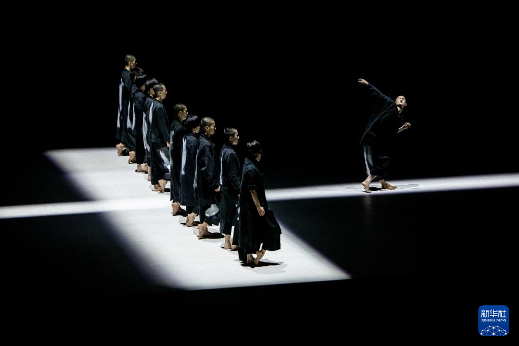 7月14日,中国“陶身体剧场”舞团的舞蹈演员在希腊南部卡拉马塔市的舞蹈剧场表演。新华社发(帕纳约蒂斯·莫斯卡德里欧摄)