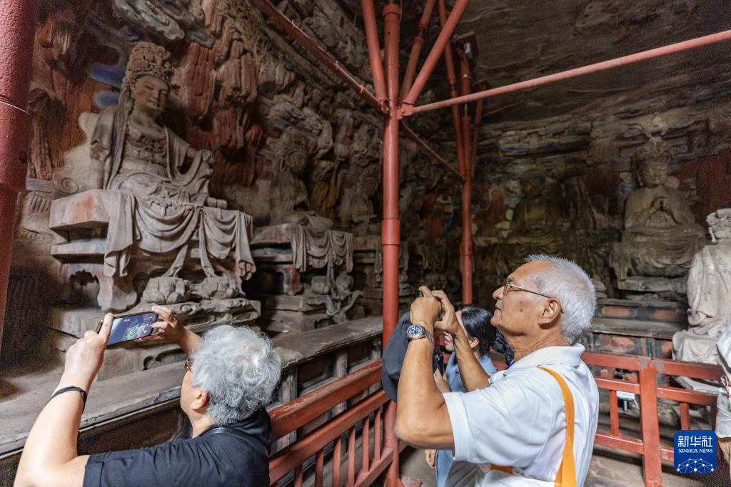 8月19日,嘉宾在大足石刻宝顶山景区内参观。