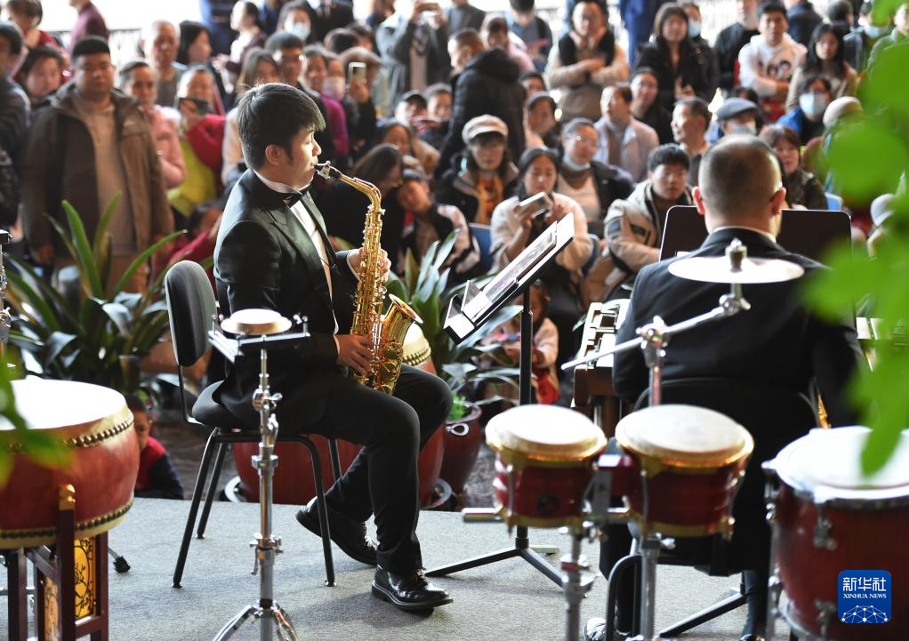 12月22日,演员在国家大剧院西咖啡厅前演奏。