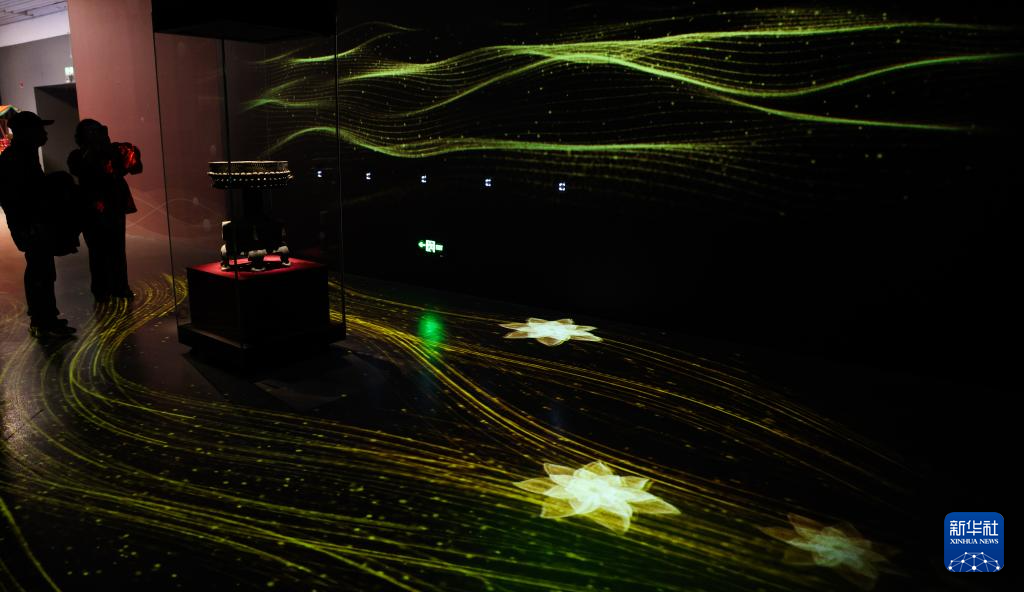 2月27日,参观者在“既往未来——小西天文物撷珍与悬塑艺术特展”的“无量之境”展台参观。