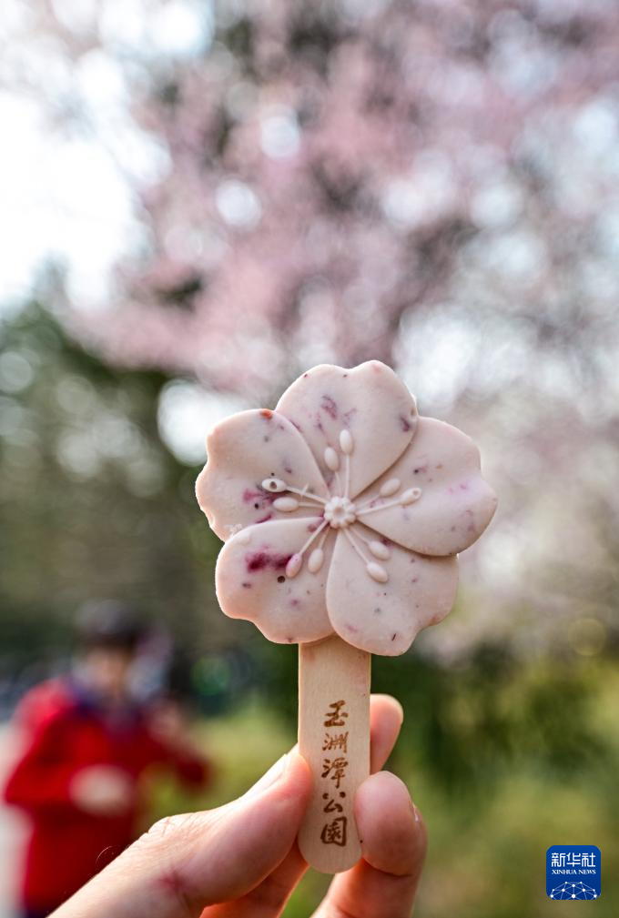 3月23日在北京玉渊潭公园内拍摄的樱花主题文创冰淇淋。