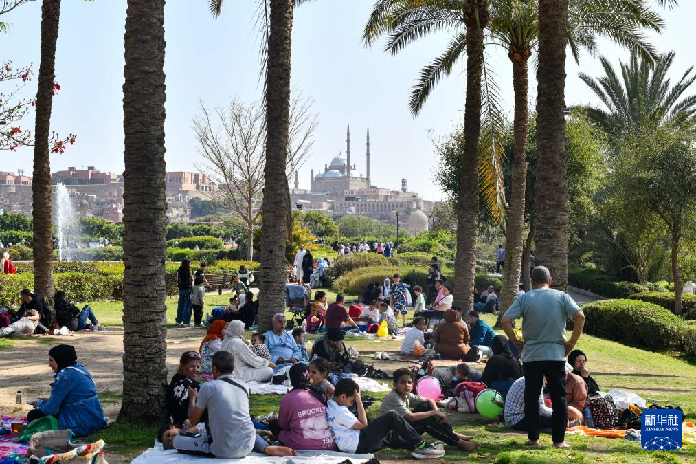 4月13日,人们在埃及首都开罗的爱资哈尔公园休闲。