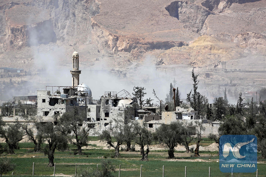 DAMASCUS, April 14 (Xinhua) -- The Syrian army on Saturday declared capturing the Douma district, the last rebel bastion in the Eastern Ghouta countryside of Damascus, after the evacuation of rebels and their families, according to the state news agency SANA.