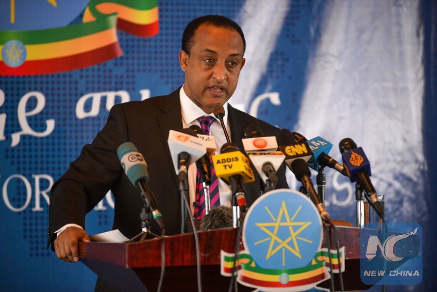 Photo of Meles Alem, Spokesperson of Ethiopia Ministry of Foreign Affairs, speaking during a press briefing in Addis Ababa, capital of Ethiopia, March 29, 2018. (Xinhua/Michael Tewelde)