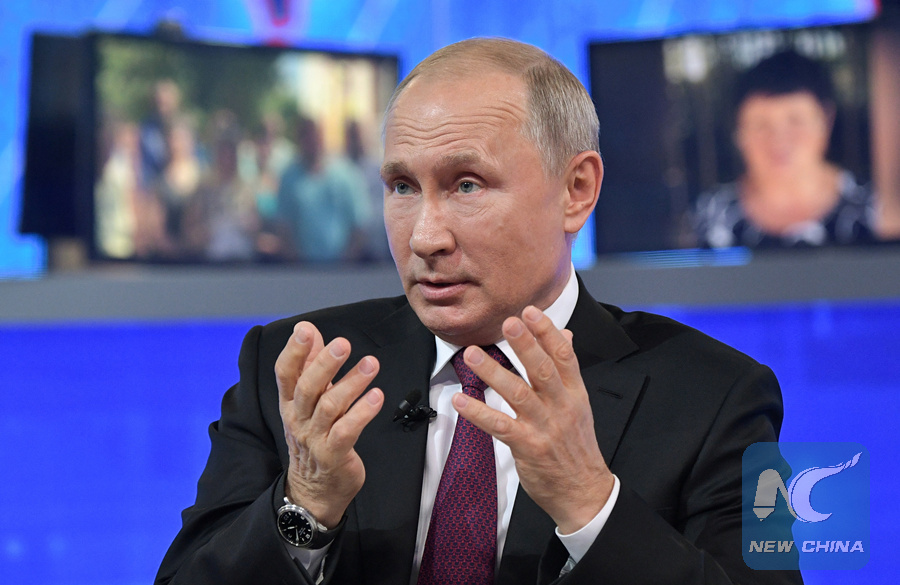 Russian President Vladimir Putin speaks during an annual live call-in session in Moscow, Russia on June 20, 2019. (SPUTNIK PHOTO)