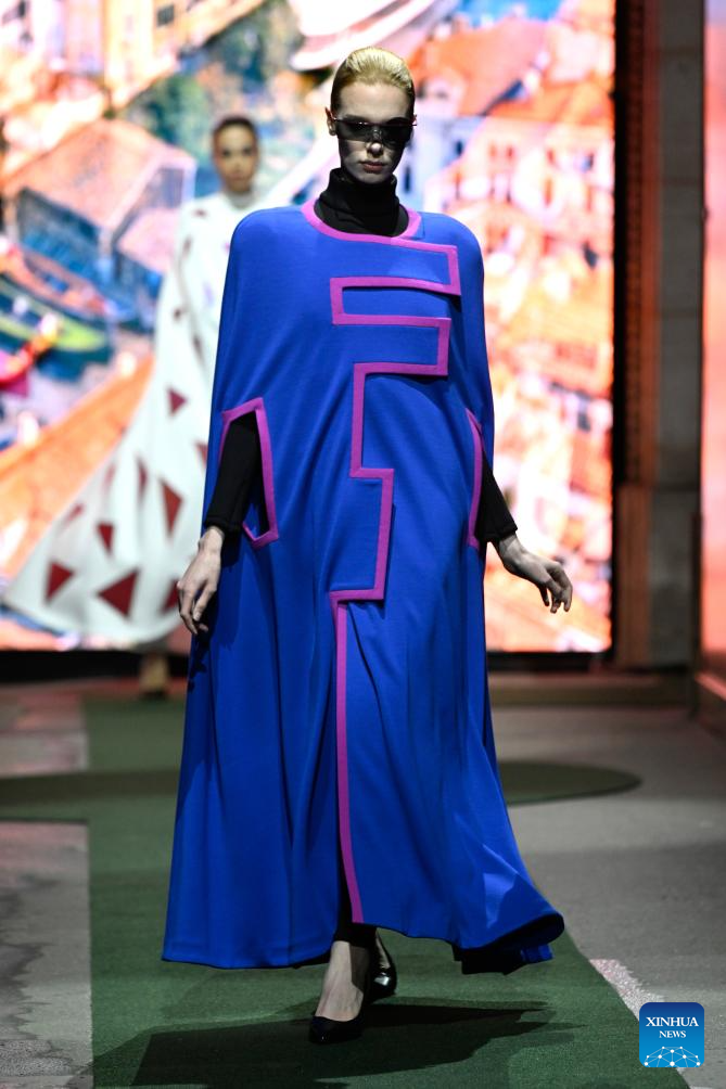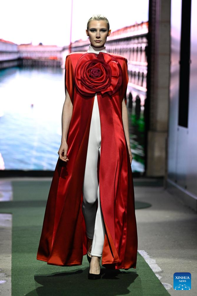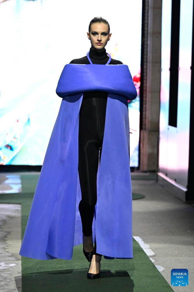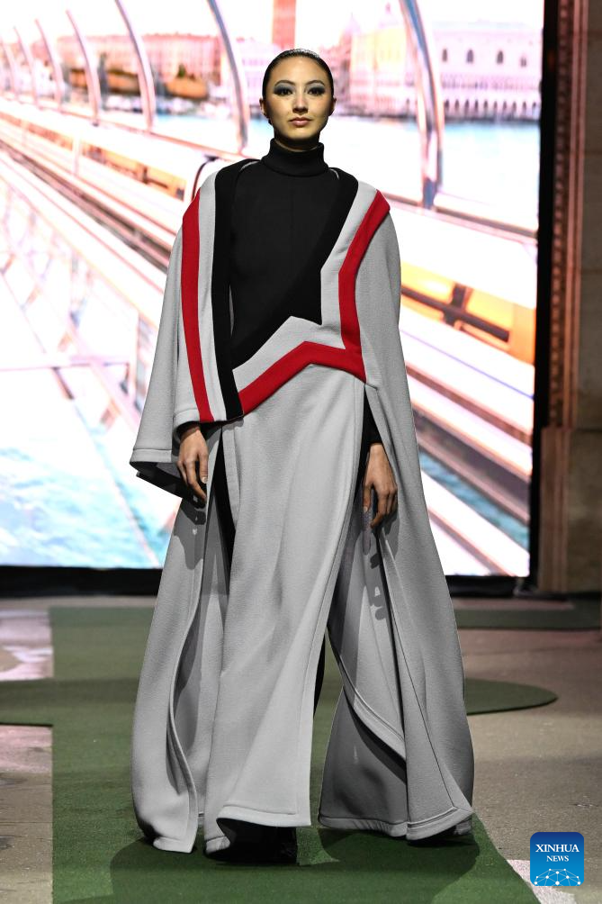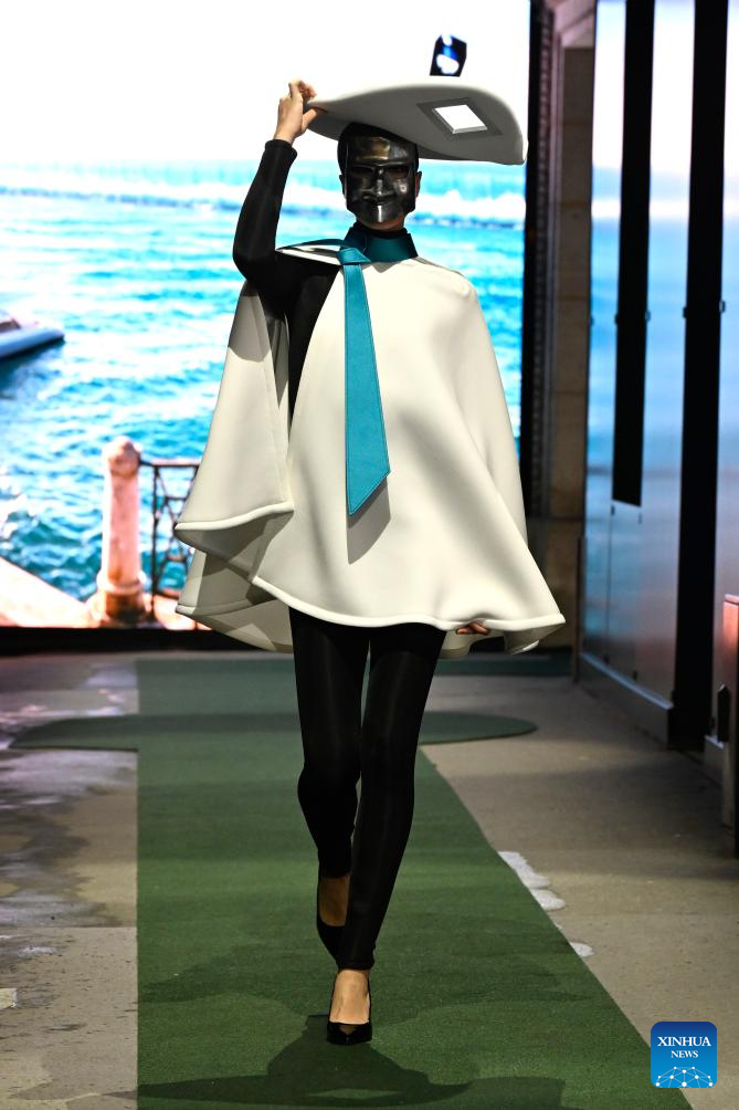 A model presents a creation from the Ready-to-Wear Fall/Winter 2026-2027 collections by Pierre Cardin during the Paris Fashion Week in Paris, France, on March 10, 2026. (MeetEurope/Handout via Xinhua)