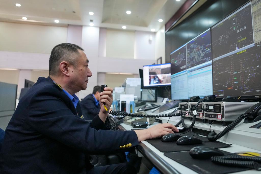 A staff member issues dispatch commands to freight trains at the dispatch workshop of Harbin South Railway Station in Harbin, northeast China's Heilongjiang Province, March 17, 2026. (Xinhua/Wang Song)