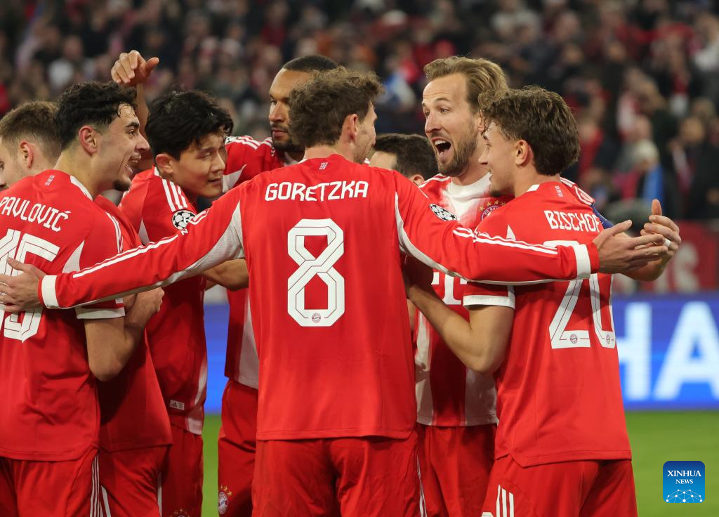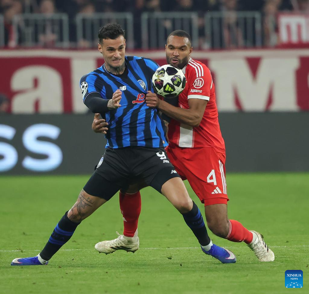 BERLIN, March 18 (Xinhua) -- Bayern Munich completed a dominant 10-2 aggregate victory over Atalanta with a 4-1 win at the Allianz Arena to advance to the UEFA Champions League quarterfinals on Wednesday.