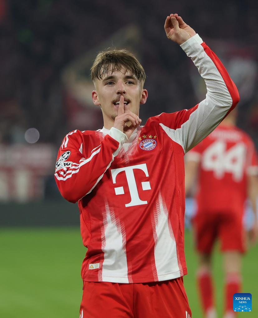 Bayern Munich's Lennart Karl celebrates his goal during the UEFA Champions League Round of 16 second leg match between Bayern Munich and Atalanta in Munich, Germany, March 18, 2026. (Photo by Philippe Ruiz/Xinhua)
