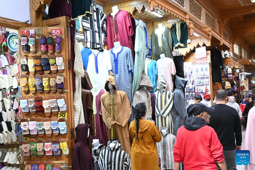 Residents shop for traditional Moroccan shoes and clothing at a local market in Rabat, Morocco, on March 19, 2026. (Photo by Aissa/Xinhua)