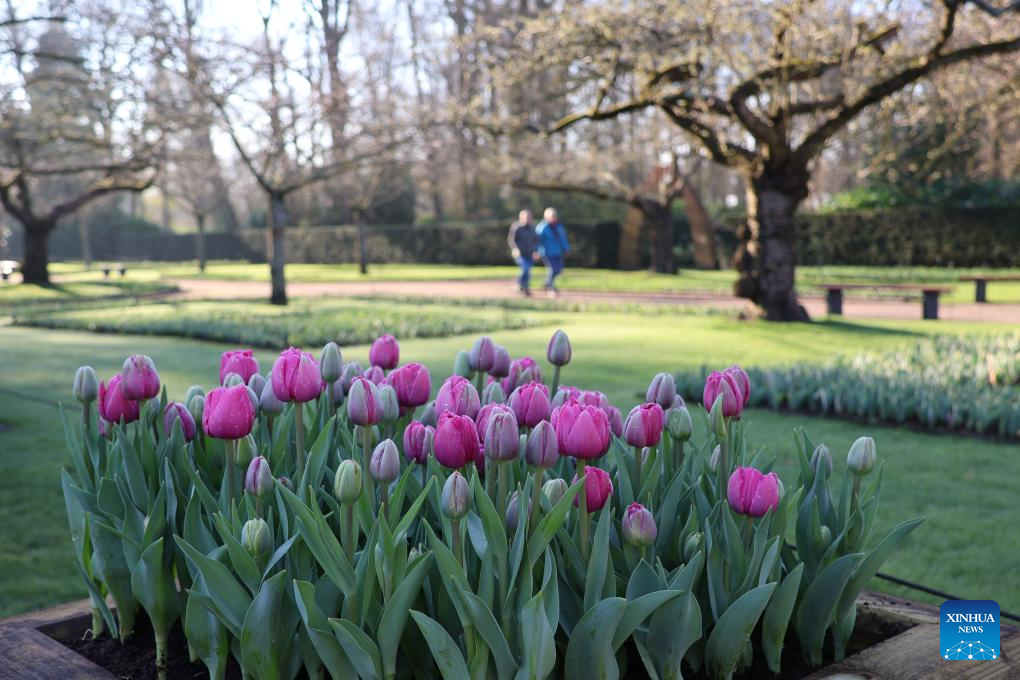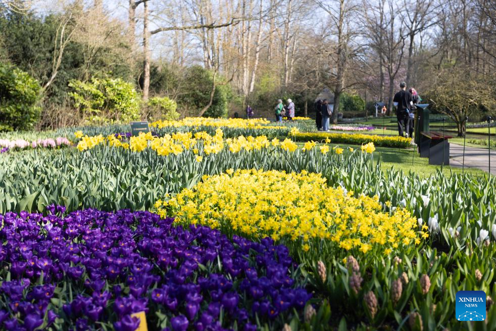 Flowers are pictured at the Keukenhof park in Lisse, the Netherlands, on March 19, 2026. The park is open to the public from March 19 to May 10 this year. (Photo by Sun Jingjing/Xinhua)
