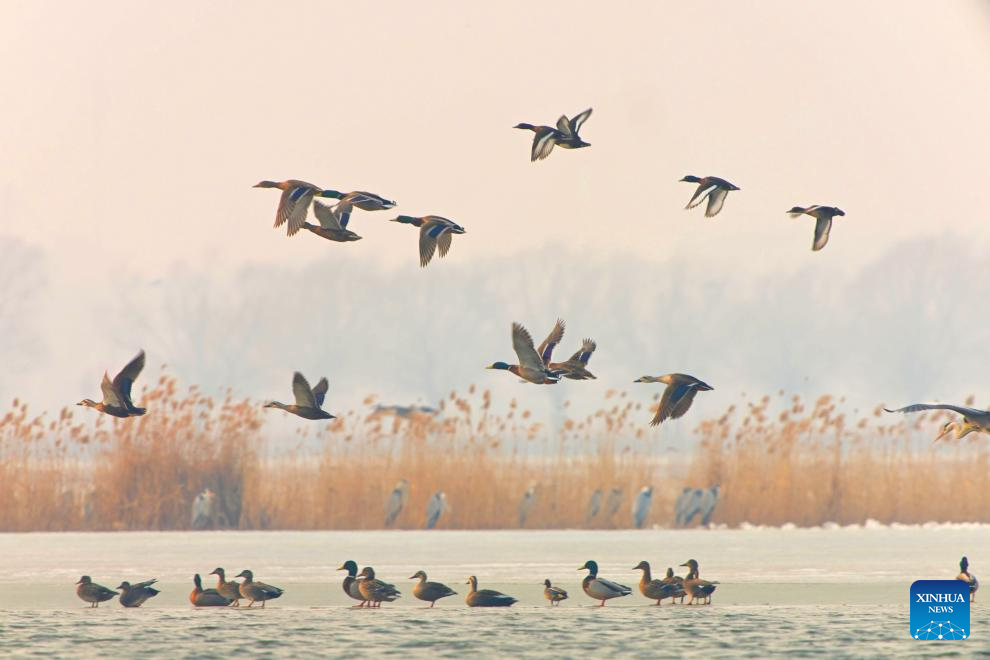 Wild ducks are seen in Qiqihar, northeast China's Heilongjiang Province, March 17, 2026. (Photo by Wang Yonggang/Xinhua)