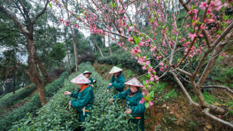 Tea farmers harvest West Lake Longjing tea in China's Hangzhou