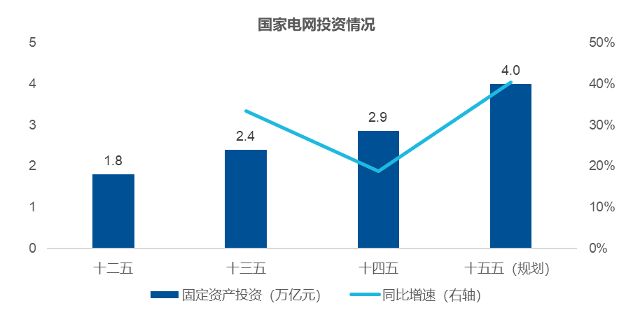2026年1月15日,国家电网公布“十五五”固定资产投资计划约4万亿元,较“十四五”增长约40%,投资规模创历史新高。1月19日,南方电网公布2026年固定资产投资计划1800亿元,已连续五年增长,年均增速约9.5%。