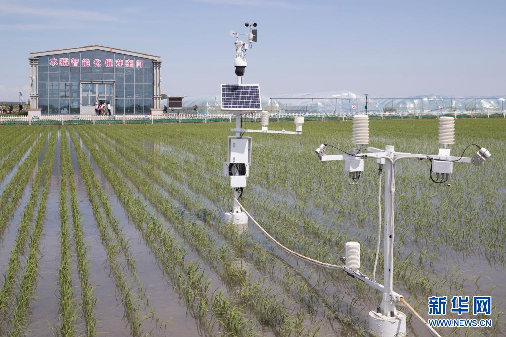 黑龍江省富錦市東北水田現(xiàn)代農(nóng)機(jī)專業(yè)合作社稻田里的專業(yè)設(shè)備(2020年6月12日攝)。