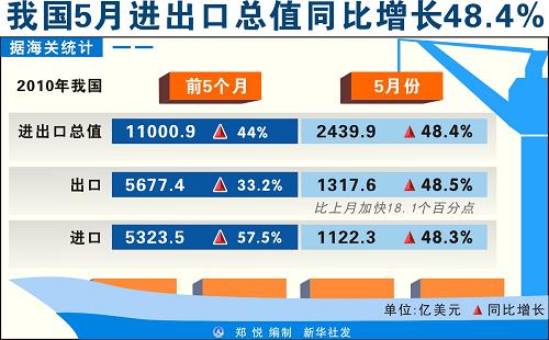 5月進(jìn)出口總值同比增長48.4%
