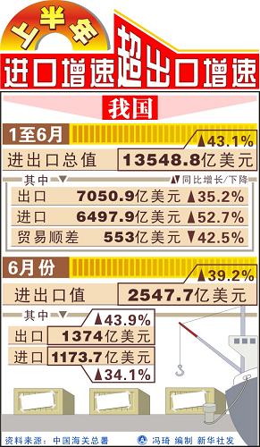 上半年進(jìn)口增速超出口增速