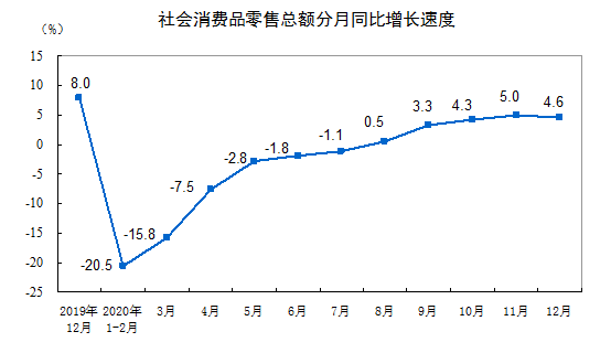 12月份,社會(huì)消費(fèi)品零售總額40566億元,同比增長(zhǎng)4.6%,增速比上月回落0.4個(gè)百分點(diǎn)。其中,除汽車以外的消費(fèi)品零售額35695億元,增長(zhǎng)4.4%。