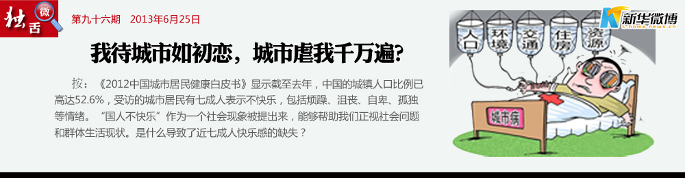 城市病了 光污染、空氣污染、噪音污染、熱島效應(yīng)、食品安全、交通障礙、高空拋物、樓宇消防電梯……吸的是霧霾,吃的是不放心食品,高起的物價,昂貴的醫(yī)療,上學(xué)難,就業(yè)難,國人能健康嗎?能快樂嗎?