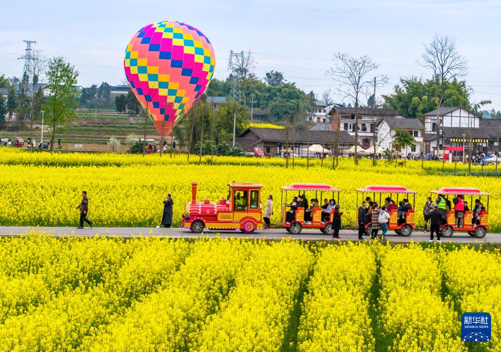 3月8日,游客在四川省广安市广安区花桥镇油菜花田间赏花游玩(无人机照片)。