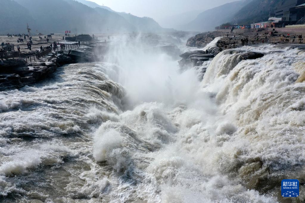 惊蛰时节,随着气温回暖,黄河上游河段融冰开河速度加快,壶口瀑布水量增大。