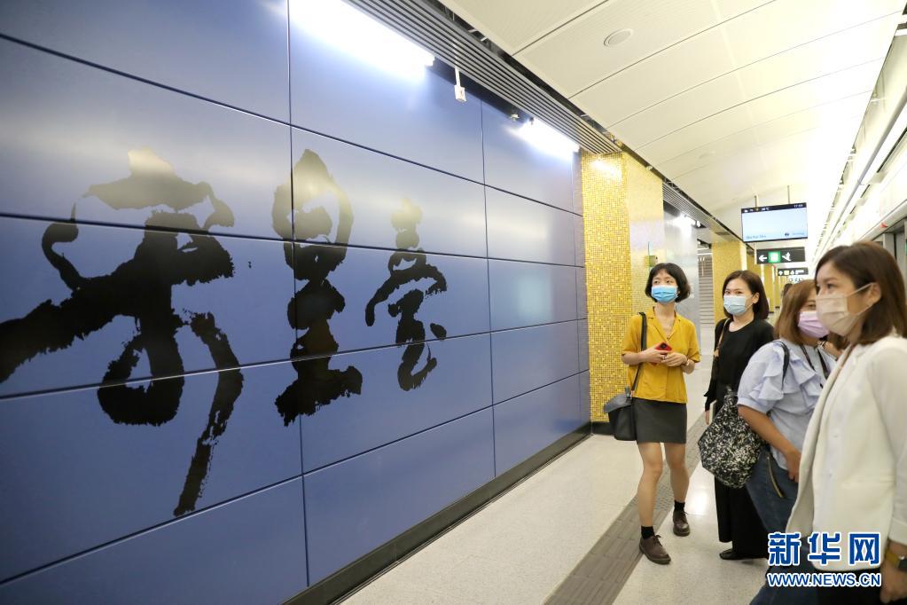 用傳統(tǒng)書法演繹的地鐵站站名“宋皇臺(tái)”(7月6日攝)。新華社記者 吳曉初 攝