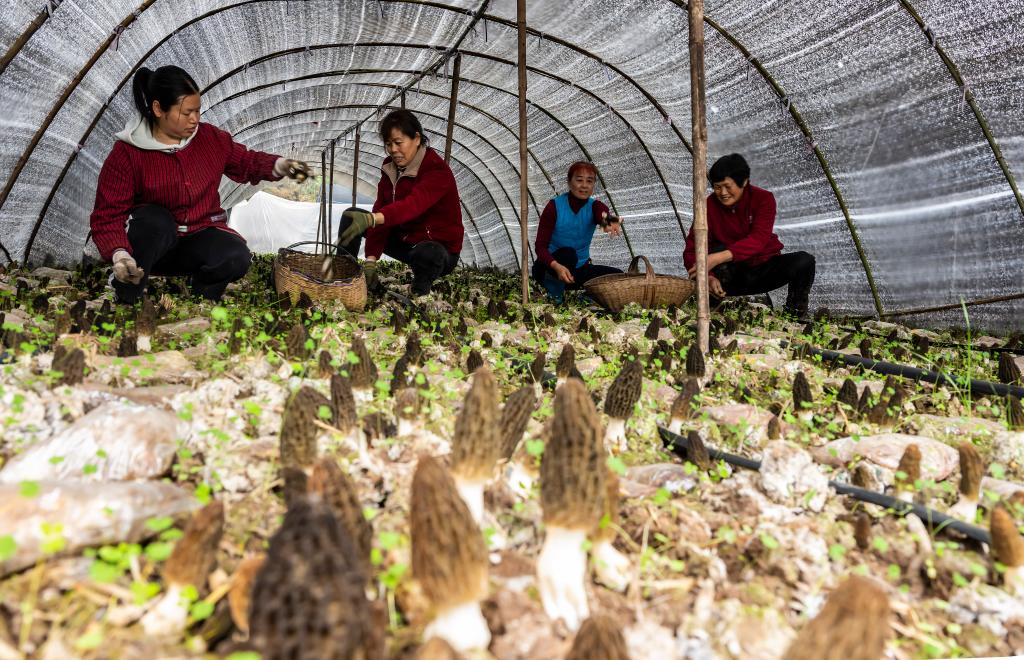 近日,湖北省宜昌市远安县种植的羊肚菌迎来丰收,种植户们忙着集中采收和加工。近年来,远安县通过“公司+合作社+农户”模式,推动羊肚菌产业从零星尝试向规模化产业化转型,促进当地经济发展,助力乡村振兴。目前,远安县建成百亩以上规模化种植基地6个,总种植面积突破3000亩。