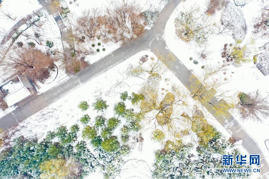 這是3月1日拍攝的山西平遙古城南門外迎薰公園一角(無人機(jī)照片)。新華社發(fā)(梁生仁 攝)