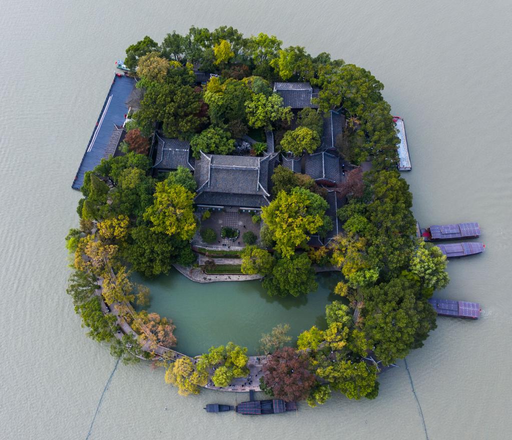 空中俯瞰嘉興南湖湖心島(無(wú)人機(jī)照片)新華社記者 徐昱攝