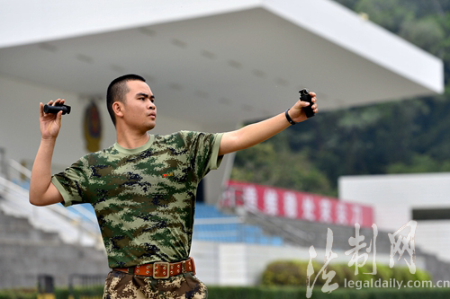 ????練兵場上空被投擲的防暴彈劃出一條條優(yōu)美的弧線?!鞍谁h(huán)、九環(huán)、十環(huán)……?!眻?bào)靶員響亮的聲音響徹練兵場。班長蔡錦彬投擲的防暴彈仿佛對靶心有向心力,一環(huán)比一環(huán)高;其他官兵也不甘示弱,剛剛創(chuàng)下的好成績不斷被刷新,戰(zhàn)士廖國勇猶如賽場上的一匹黑馬,憑著過硬的實(shí)力,一路過關(guān)斬將,奪得第一。(林宇華)