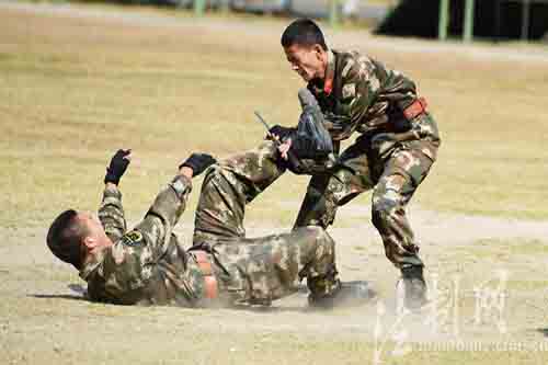 ????“進(jìn)可一招殺敵,退可一招制服?!币坏裙Τ?、反恐尖兵、軍事教員、四級(jí)警士長李文介紹,此次展示的特種格斗控制術(shù)是該支隊(duì)在緝私、緝毒、反恐、維穩(wěn)等長期戰(zhàn)斗中形成和發(fā)展起來的一項(xiàng)格斗控制技能,綜合運(yùn)用踢、摔、擒拿等技法,涵蓋重點(diǎn)部位打擊、徒手打擊、警械運(yùn)用等要領(lǐng),使官兵在訓(xùn)練中體驗(yàn)綜合格斗,在格斗中突破自我身體極限,達(dá)到強(qiáng)身健體、提高戰(zhàn)斗水平的目的。
