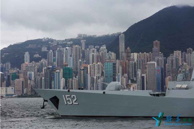 ↑7月7日,海軍濟(jì)南艦駛?cè)胂愀郯捍薮a頭。新華社記者 曾濤 攝