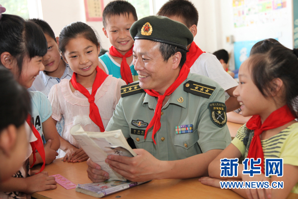 徐洪剛在河南省洛陽市一所小學開展國防教育(2012年6月13日攝)。新華社發(fā)