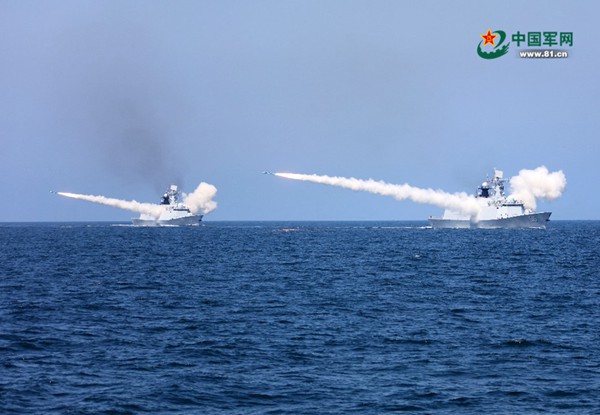 8月7日,海軍在黃海、渤海相關(guān)海空域組織實(shí)兵實(shí)彈對抗演習(xí),最大限度檢驗(yàn)體系作戰(zhàn)能力、戰(zhàn)法訓(xùn)法、武器裝備效能,共實(shí)射各型導(dǎo)彈數(shù)十枚。李唐 攝(圖片來源:中國軍網(wǎng))