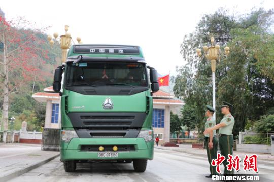圖為邊檢戰(zhàn)士準(zhǔn)備對入境貨車進(jìn)行檢查?!埻⑸w 攝